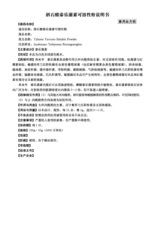用于巴氏桿菌和大腸桿菌所致的細(xì)菌性疾病。