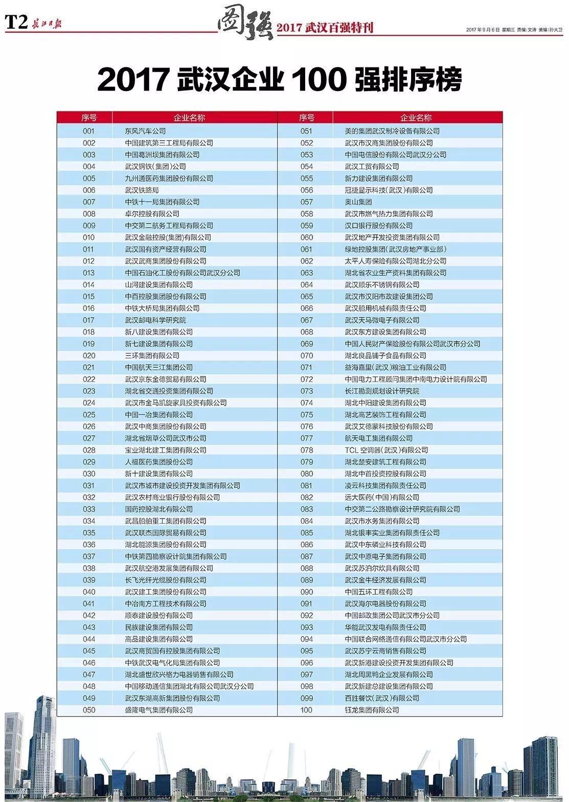 位列2017武漢企業(yè)100強(qiáng)第29名,