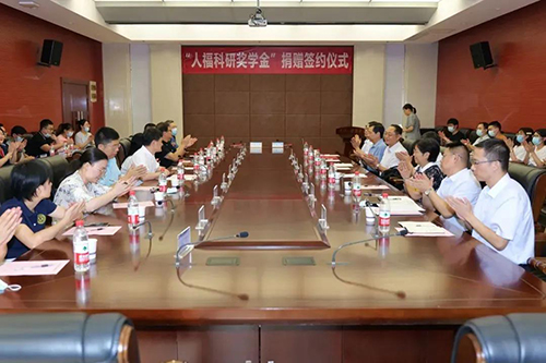 ?9月8日,“人福科研獎(jiǎng)學(xué)金”捐贈(zèng)簽約儀式在武漢大學(xué)醫(yī)學(xué)研究院隆重舉行。宜昌人福藥業(yè)向武漢大學(xué)捐資150萬(wàn)元設(shè)立獎(jiǎng)學(xué)金,獎(jiǎng)勵(lì)全校在讀的醫(yī)學(xué)、生物學(xué)、藥學(xué)、化學(xué)領(lǐng)域優(yōu)秀本科生和研究生,并共建校外實(shí)習(xí)實(shí)踐基地,以此支持教育事業(yè)發(fā)展、助力醫(yī)學(xué)研究院建設(shè)。