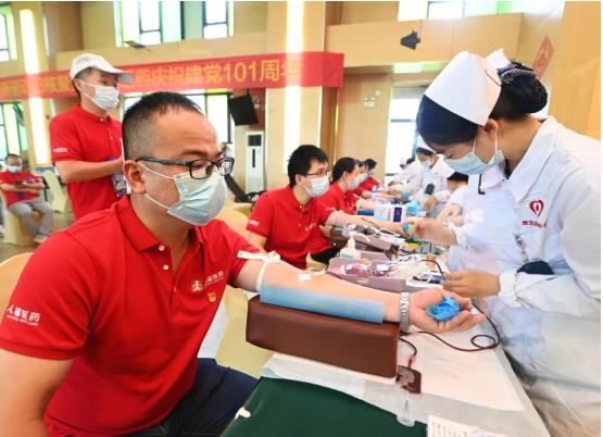6月29日,武漢市衛(wèi)生健康委、武漢血液中心與人福醫(yī)藥集團聯(lián)合開展“黨旗飄揚 熱血人?!秉h建共建活動,以實際行動慶祝中國共產(chǎn)黨成立101周年?;顒赢斕欤?00多名黨員和職工“熱血集結(jié)”、奉獻愛心,最終121人成功獻血32260毫升。