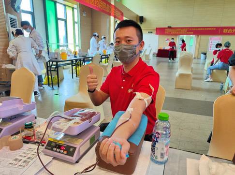 “這是我第5次獻血,能為黨的生日送上一份‘熱血禮物’,是我的榮幸?!焙备鸬耆烁K幱幂o料公司車間主任張干波,自2017年入黨以來,一直積極參與集團組織的獻血活動。“能獻血說明我的身體好著呢!”據(jù)張干波介紹,他十分注重保持良好的身體狀態(tài),積極參加各類體育鍛煉活動。幾年前,他還成為了人福醫(yī)藥長跑隊的骨干人員,在當時近40歲的年紀獲得了集團運動會800米第6名的佳績。現(xiàn)場,他還帶動了5名同事加入了“熱血行動”。